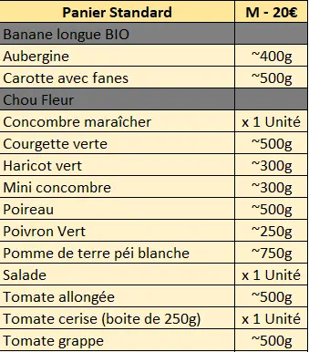 - Choisissez votre panier de fruit et légumes parmi les options ci-dessous.