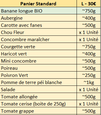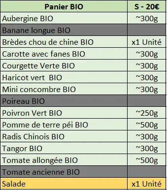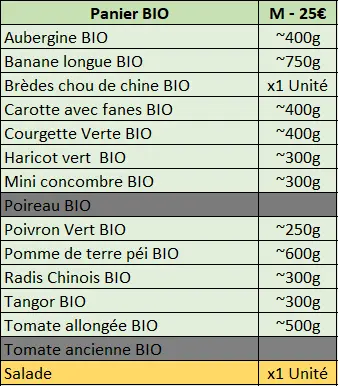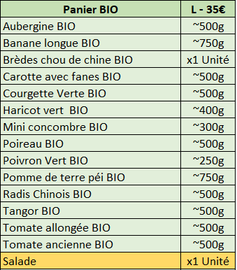 ⬇️ Retrouvez ci-dessous le contenu de nos paniers 100% Bio. ⬇️
